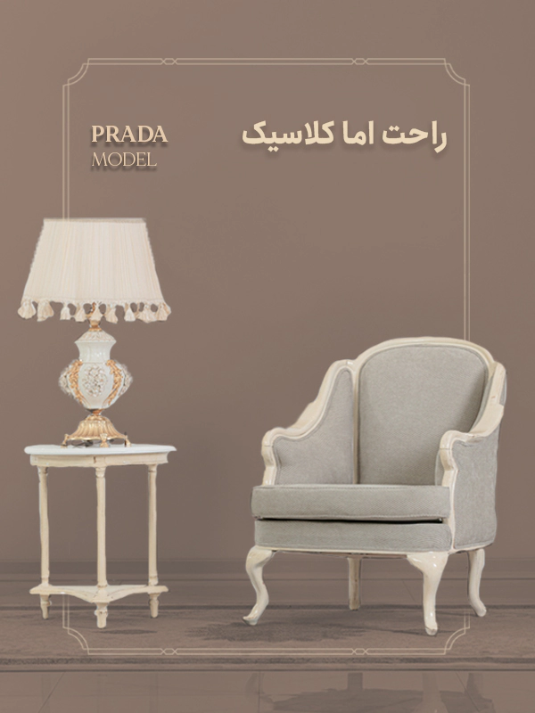 پرادا با طراحی نئوکلاسیک ساده، خطوط متقارن و پایه‌های مستحکم ساخته شده و رویه‌کوبی آن با فنربندی و فوم سرد درجه‌یک راحتی و دوام مناسبی برای استفاده روزمره فراهم می‌کند.